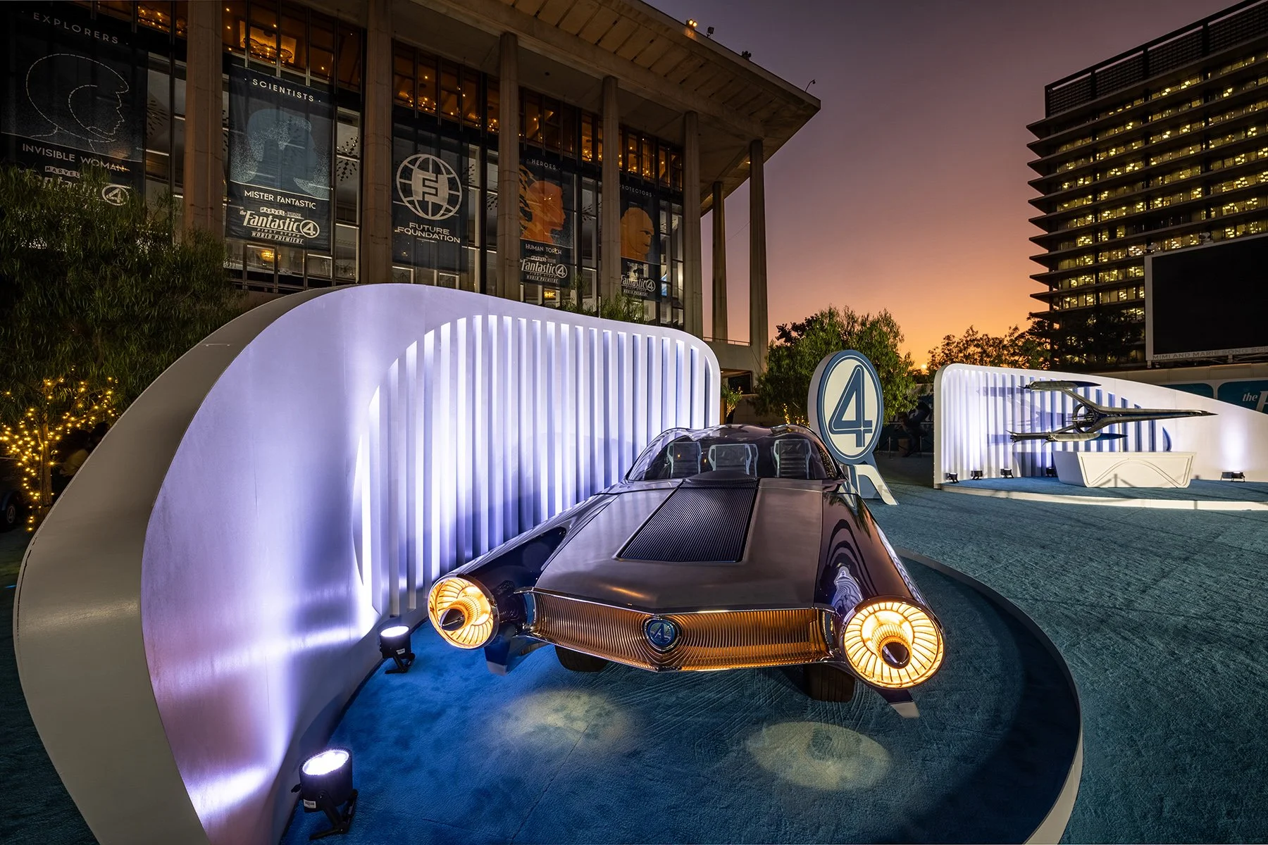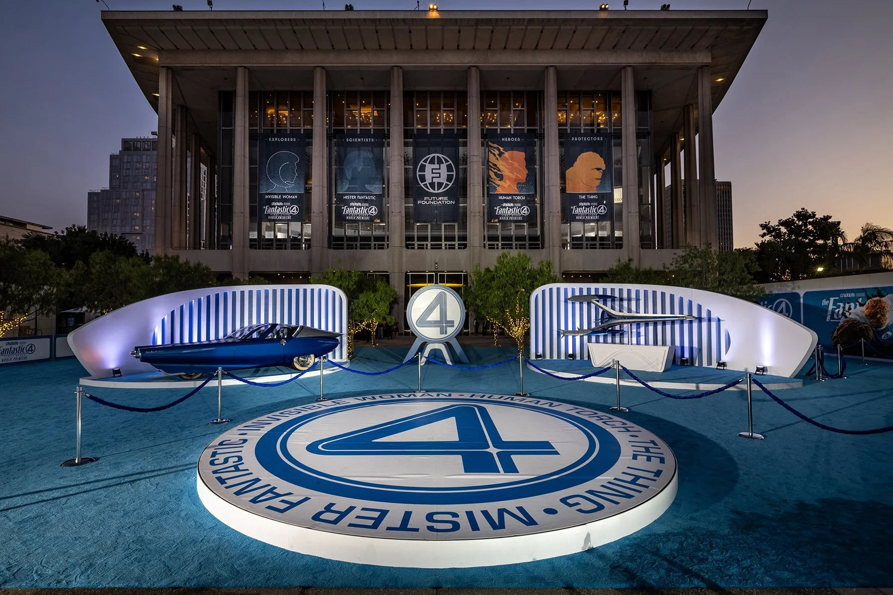 Designed for the world premiere of Fantastic Four: First Steps, this cinematic red carpet takeover transformed the iconic Dorothy Chandler Pavilion into a sleek, modern tribute to Marvel’s first family. The design blended classic comic book energy with futuristic minimalism, creating a clean, bold visual language that played across scenic walls, branded step-and-repeats, and lighting treatments.